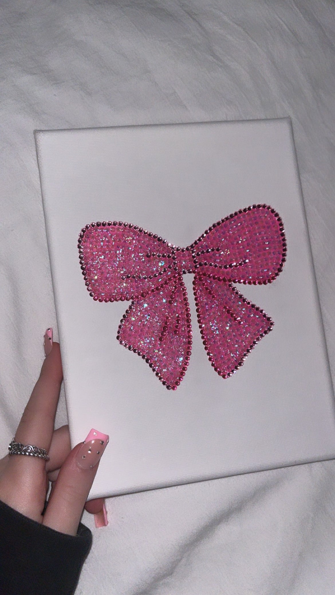 Pink bow gem canvas
